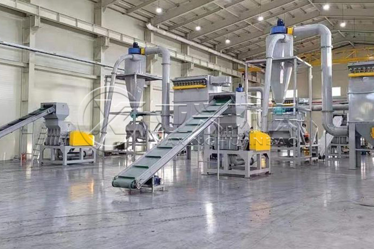 亞興成套鋰電池極片處理設(shè)備達(dá)到環(huán)保標(biāo)準(zhǔn),以活性炭過濾設(shè)施,水噴淋設(shè)施,煙氣凈化設(shè)施等輔助完成氣味收集工序。在物料收集部分,設(shè)計(jì)相配套的收集設(shè)施,將物料自動收集,以物理化的加工方式,避免銅鋁氧化問題的產(chǎn)生,做到真正的鋰電池正負(fù)極片的回收利用,將銅鋁,隔膜,外殼做到99.8%的分離效率。廢舊鋰電池帶電或者經(jīng)過放電以后,進(jìn)行一級撕碎和破碎,破碎后物料通過輸送機(jī),在輸送過程中或加溫烘干處理,再由分選設(shè)備祛除其中的鐵殼與隔膜紙之后剩下了鋰電池的正負(fù)極片混合物料,然后再由細(xì)碎破碎機(jī)和水磨搓球機(jī)(制粒機(jī))進(jìn)一步的細(xì)碎及靜電分離、篩分處理,將其中的鋁、銅和極片粘合物分離回收。